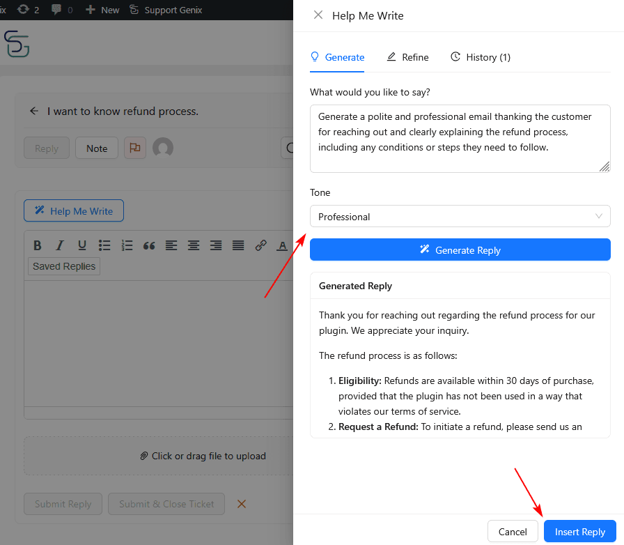 - Click “Refine Reply”