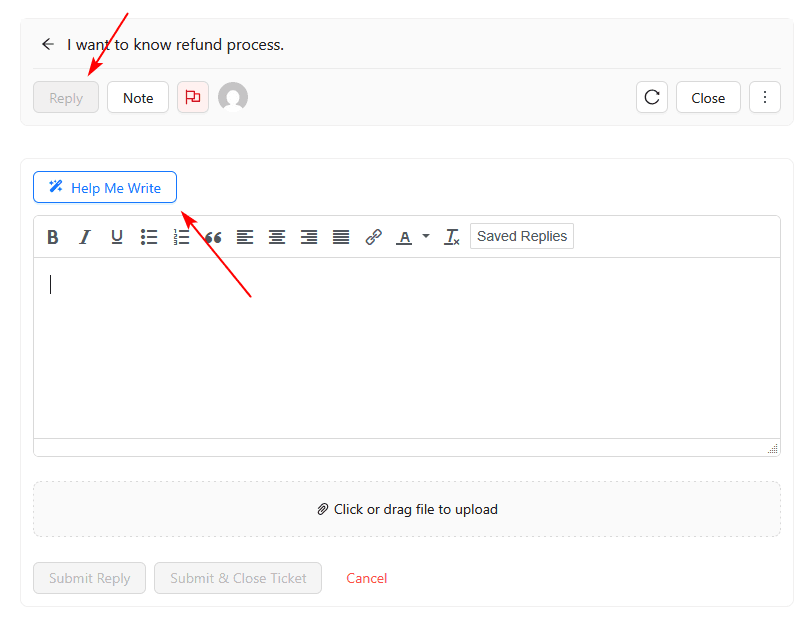 - Open any ticket and click reply
