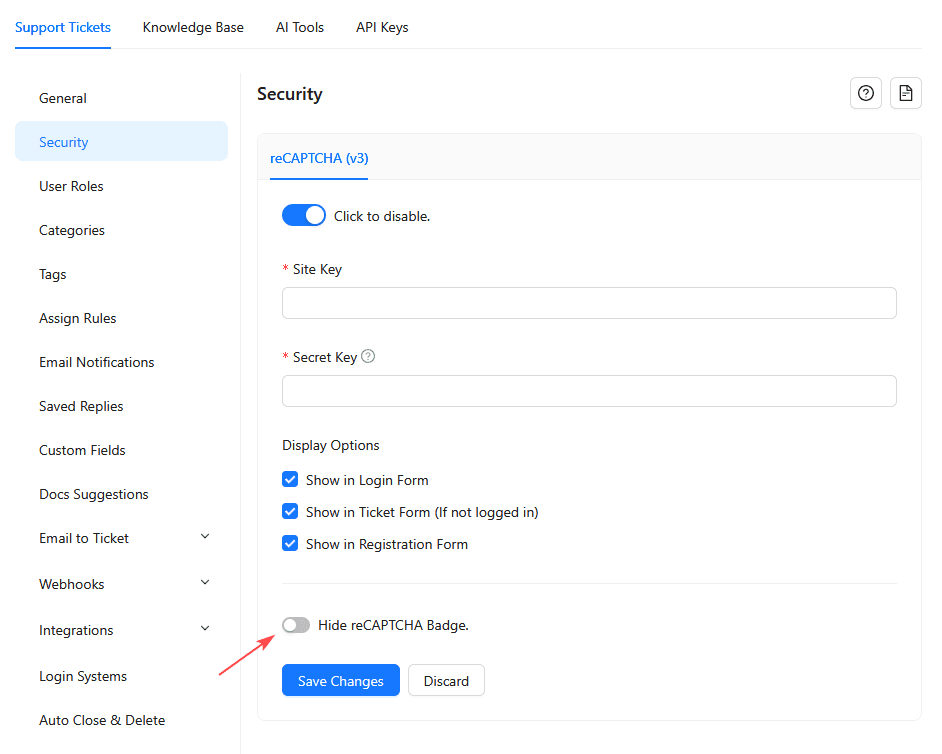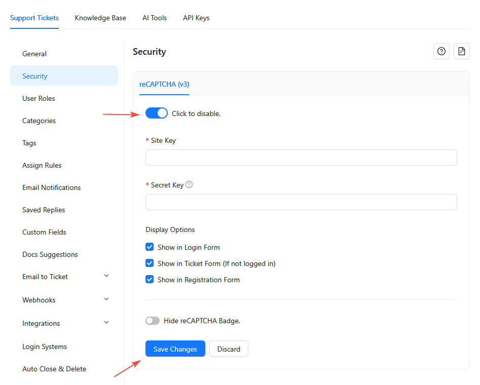 Step 2: Open reCAPTCHA Settings in SupportGenix