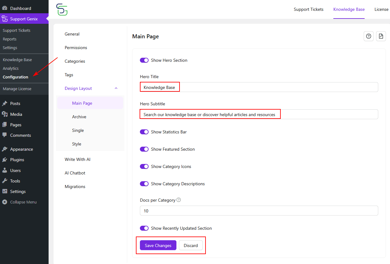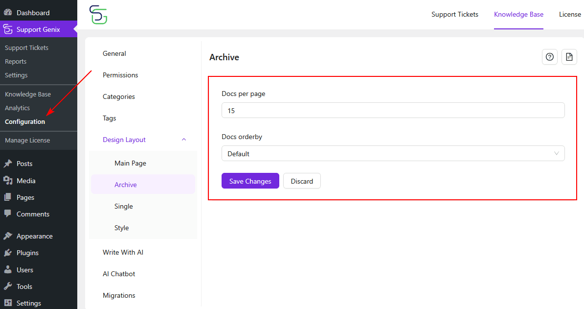 The Design Layout settings in Support Genix allow you to fully control the appearance and structure of your Knowledge Base. You can configure how articles are listed, displayed, and styled to match your website’s branding and user experience preferences. In this guide, we’ll walk you through each section—Base, Archive, Single, and Style—so you can easily tailor your Knowledge Base layout.