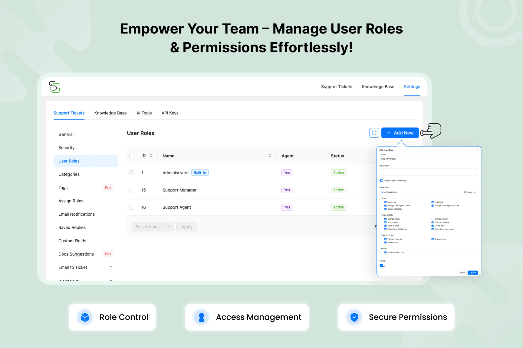 Support Genix Pro unlocks our complete suite of advanced features including Email to Ticket conversion, WhatsApp & Slack integrations, BetterDocs knowledge base integration, performance insights, auto-close tickets, style customization, WooCommerce support, and comprehensive reporting—all designed to streamline your customer support workflow.
